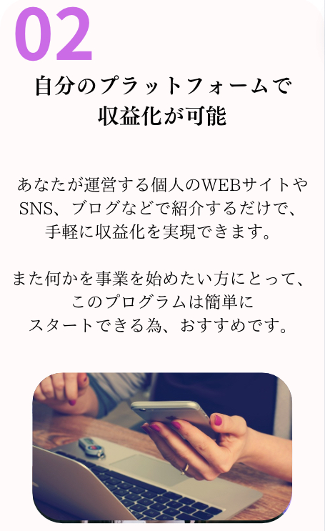 それを見たユーザーの方が商品を購入すると販売成果として報酬を得る事が出来ます。